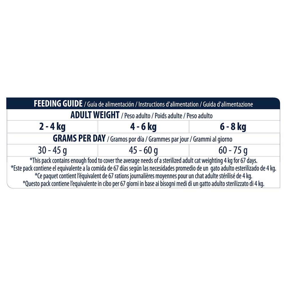 Ingredients: Salmon (18%), corn protein, rice (15%), dehydrated salmon protein, wheat, animal fat, wheat protein, corn, protein hydrolysate, beet pulp, potassium chloride, plasma proteins (natural source of immunoglobulins) 0.4%, inulin (0.4%), natural polyphenols (0.01%).