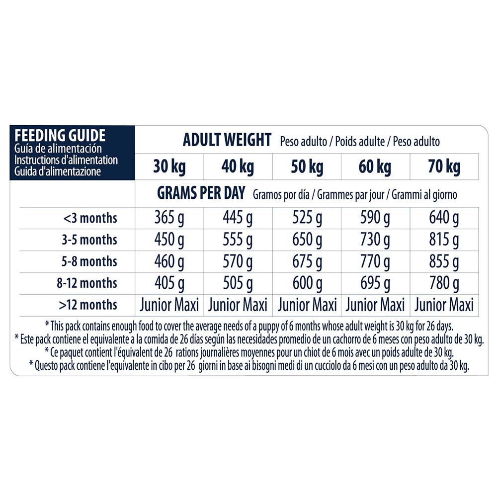 Analytical constituents (%): Protein 29.0%, fat 16.0%, Crude fibers 2.5%, Ash 6.5%, Calcium 1.2%, Phosphorus 1.0%, omega 3: 0.3%, omega 6: 2.9%.