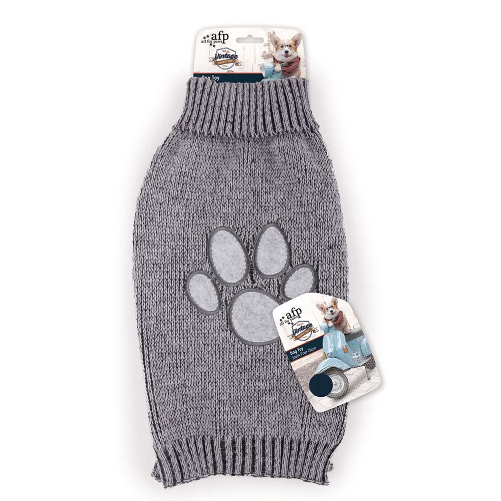 Knit Sweater with paw design in grey color.