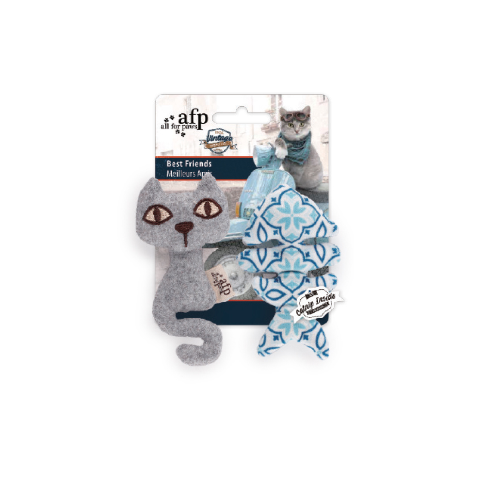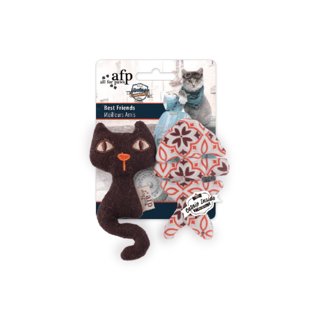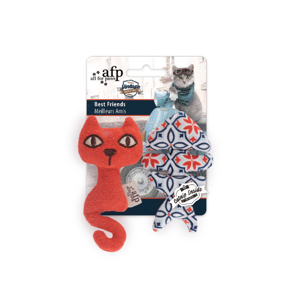 Retro-style toys filled with catnip. The Best Friends will become your cat's favorite companions. They feature colorful fabrics inspired by home decorations to seamlessly fit into any home.