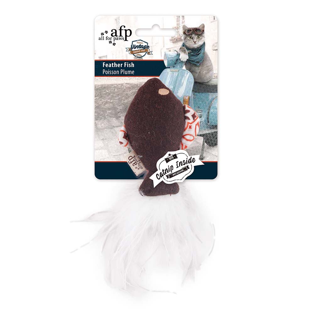 Retro-style toys filled with catnip. The Feather Fish will become your cat's favorite companion. They feature colorful fabrics inspired by home decorations to fit seamlessly into any home.