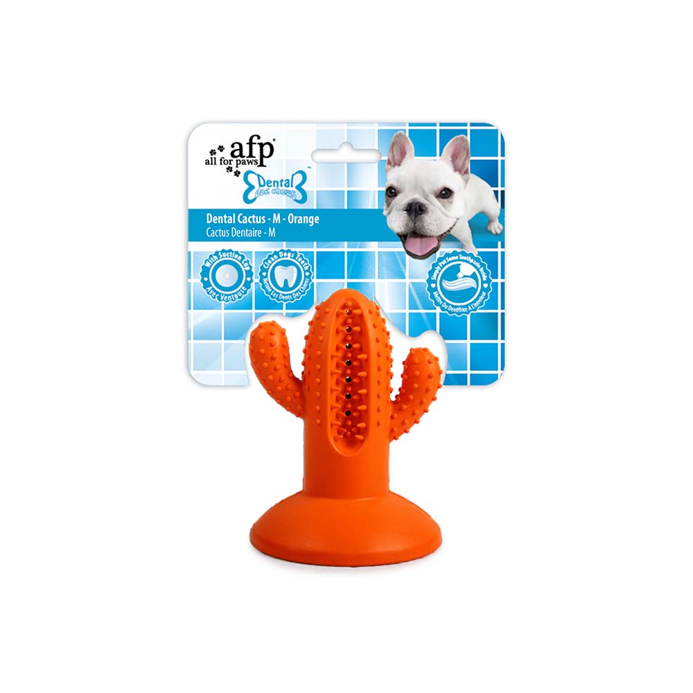Chewing is a habit that keeps your dog's teeth and jaws healthy. It can help remove tartar from the teeth, offering fresh breath and healthy gums. The Dental Dog Chews range includes a variety of products in unique shapes and sizes, ensuring the successful removal of residues and plaque from your beloved friend's teeth. The cactus features grooves lined with spikes and a recess for toothpaste. When the dog chews it, it prevents plaque buildup. Made from natural rubber, with a strong suction cup that can attach to any floor.