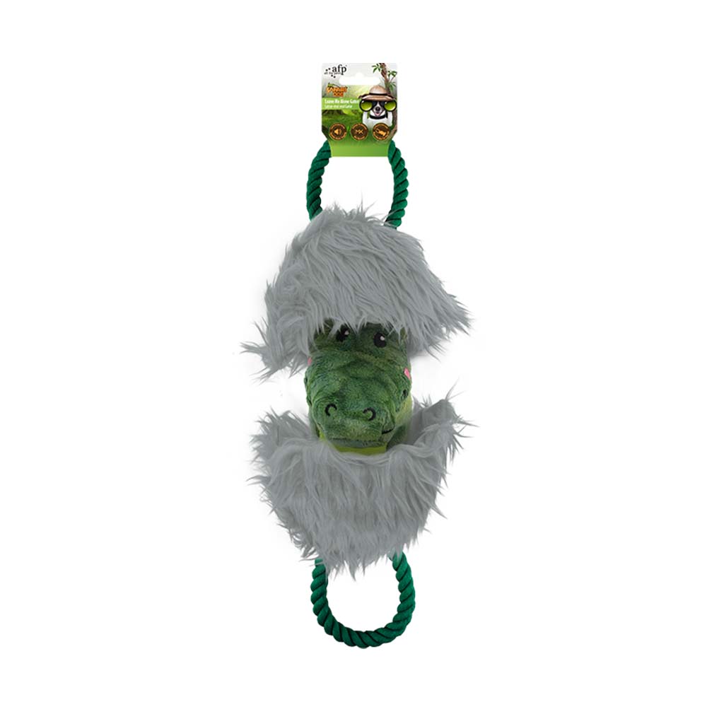 Gator toy with cute design for excitement. It has a built-in squeaker that makes noise when pressed. The rope handles offer extra fun with pulling. The variety of textures and materials will excite your beloved friend, making play particularly enjoyable.
