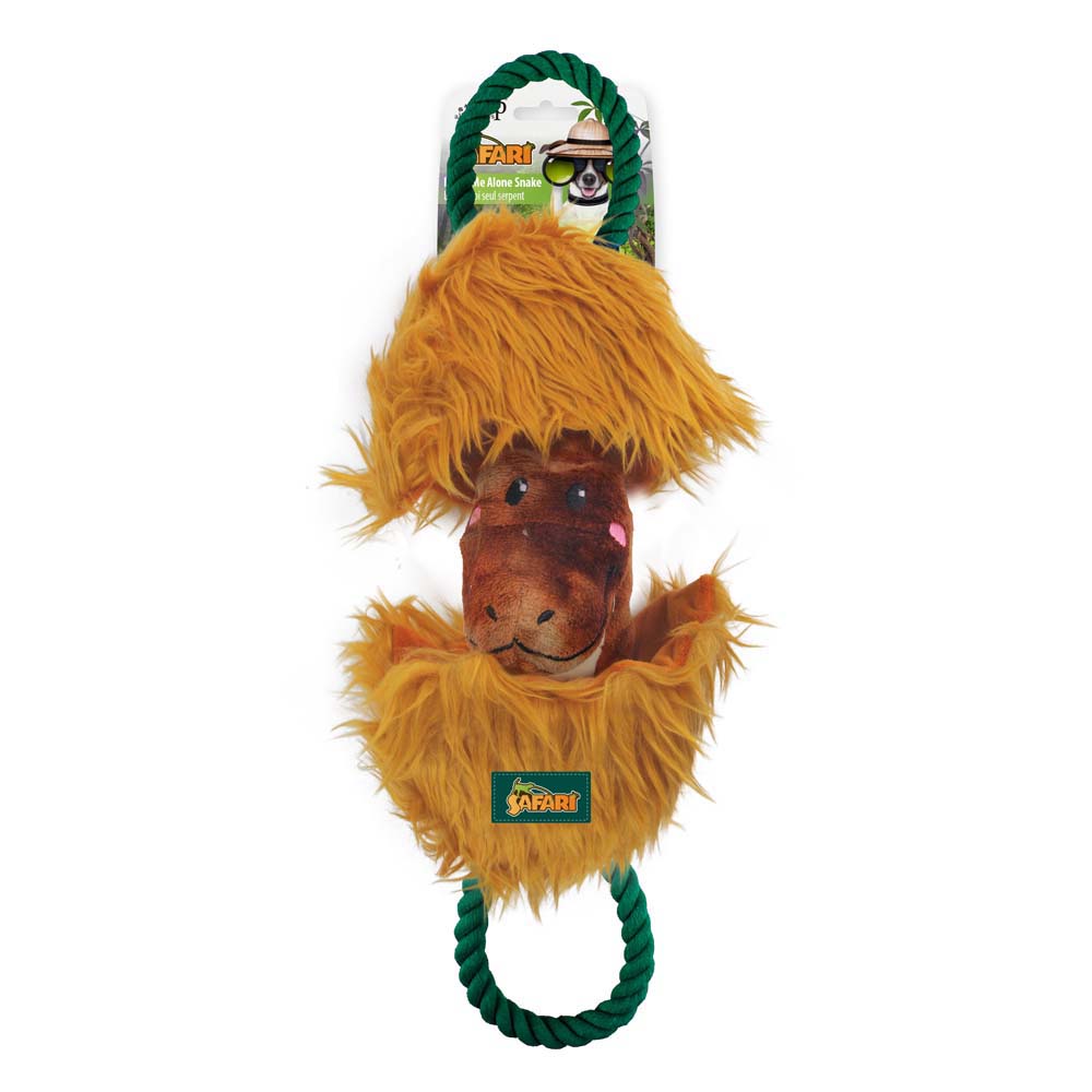 Snake toy with a cute design for activity. It features a built-in speaker that makes a sound when pressed. The rope handles offer extra fun with pulling. The variety of textures and materials excite your beloved friend and make the toy particularly entertaining.