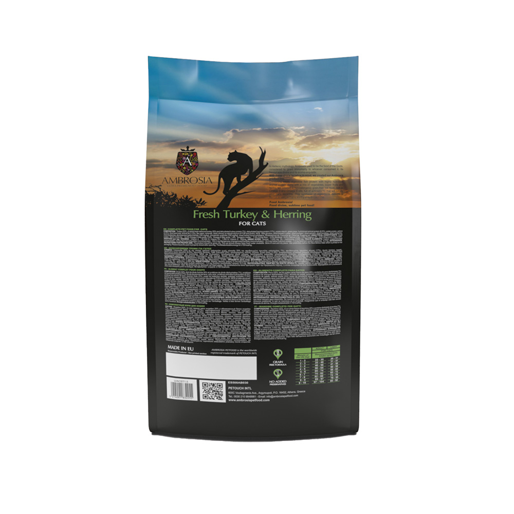 Ingredients: Turkey (32%, of which 25% is fresh boneless turkey and 7% dehydrated turkey protein), dehydrated herring protein (17%), potato starch, peas, hydrolyzed animal protein (6.5%), potato protein, Salmon Oil (2%), dried beet pulp, animal fat (1.5%), minerals, Dried dandelion (Natural Source of Fructooligosaccharides and Inulin), MOS and beta-glucans, dried brewer's yeast, dried pumpkin, dried spinach, dried tomatoes, dried cranberries, dried blueberries, glucosamine hydrochloride (100 mg/kg), Chondroitin sulfate (100mg/kg), Plant extract (Yucca schidigera, Rosemarinus sp, Vitis sp, Curcuma sp, Citrus sp, Eugenia sp).
