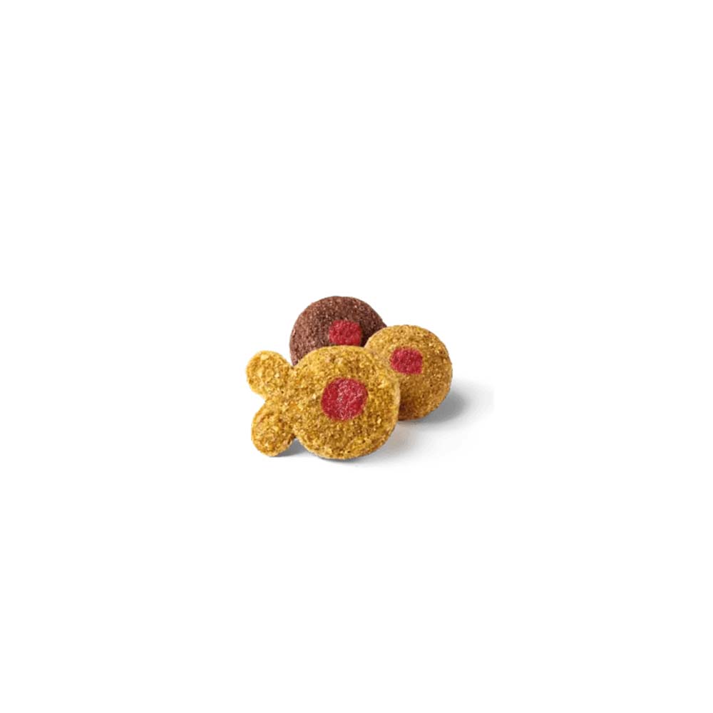 ingredients: cereals, meat and meat derivatives, plant protein extracts, oils and fats, fish and fish derivatives (min. 4% salmon in salmon pieces and 4% tuna in tuna pieces), minerals, vegetables (min. 4% green peas in vegetable pieces).