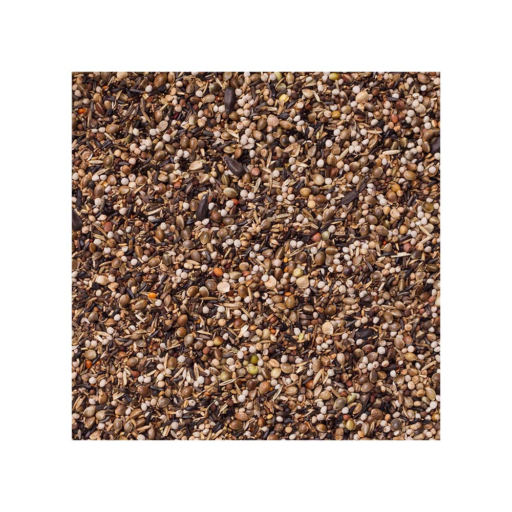 A finely cut, high-quality mix for goldfinches, including the European Goldfinch, Siberian Goldfinch, and Himalayan Goldfinch. Only the best seeds are selected for inclusion in these unique mixes. The great variety of special seeds, including chicory, evening primrose, black and white lettuce seeds, white and brown perilla, and black sunflower seeds ensures that this mix will be highly pleasing to your birds and guarantees complete absorption of this high-quality mix. The mix is energy-rich thanks to the high content of niger seeds and hemp seeds. Complete Animal Food.