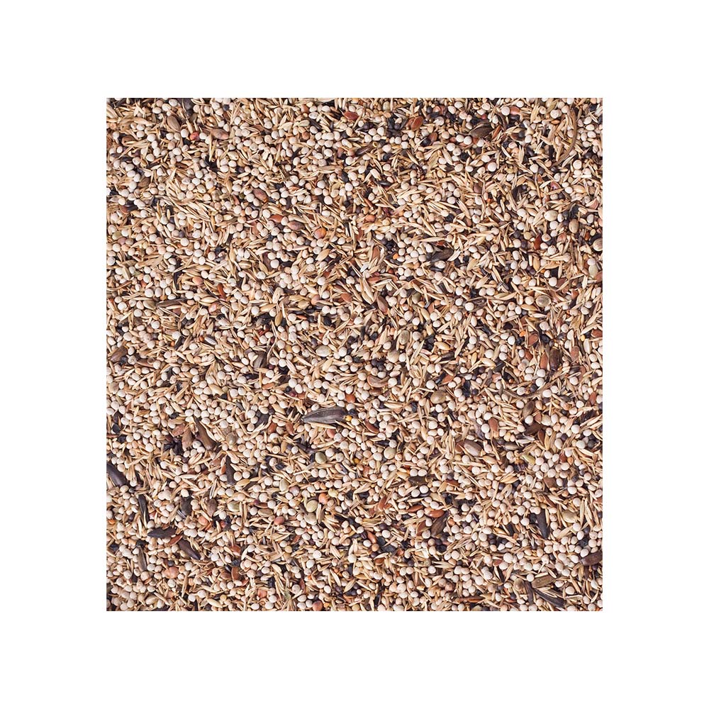 A finely milled, high-quality blend for goldfinches, including the European goldfinch, Siberian goldfinch, and Himalayan goldfinch. Only the finest seeds are selected for inclusion in these unique blends. The wide variety of special seeds, such as chicory, primrose, black and white lettuce seeds, white and brown perilla, and black sunflower seeds, ensures this mixture will be highly appealing to your birds and guarantees full absorption of this high-quality mix. The blend is rich in energy due to the high amount of niger seeds and hemp seeds.