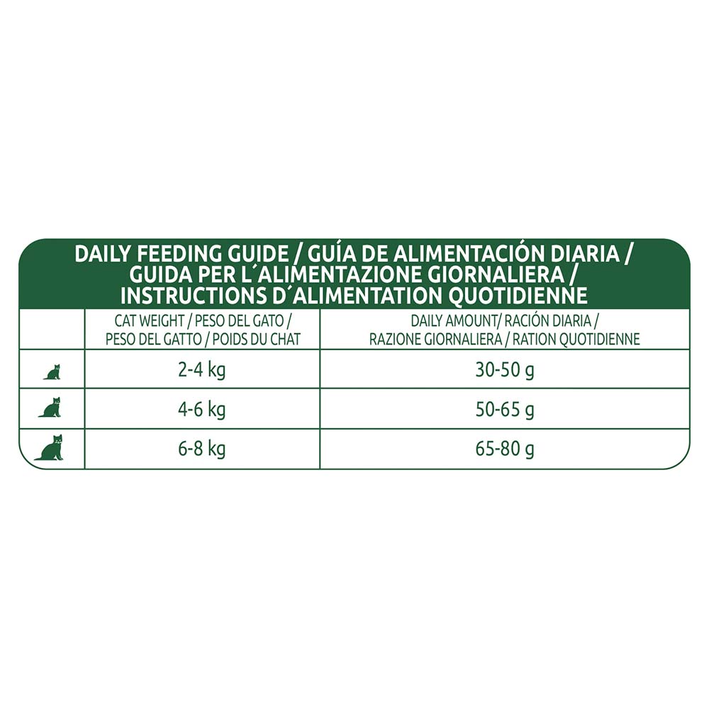 Analytical constituents (%): Protein 35%, Fat 11.7%, Raw fibers 5%, Minerals 7.5%, Calcium 1.1%, Phosphorus 0.9%, Moisture 6%, Sodium 0.7%, Potassium 0.78%, Magnesium 0.11%, Omega 3 0.11%, Omega 6 1.5%, Taurine 700 mg.