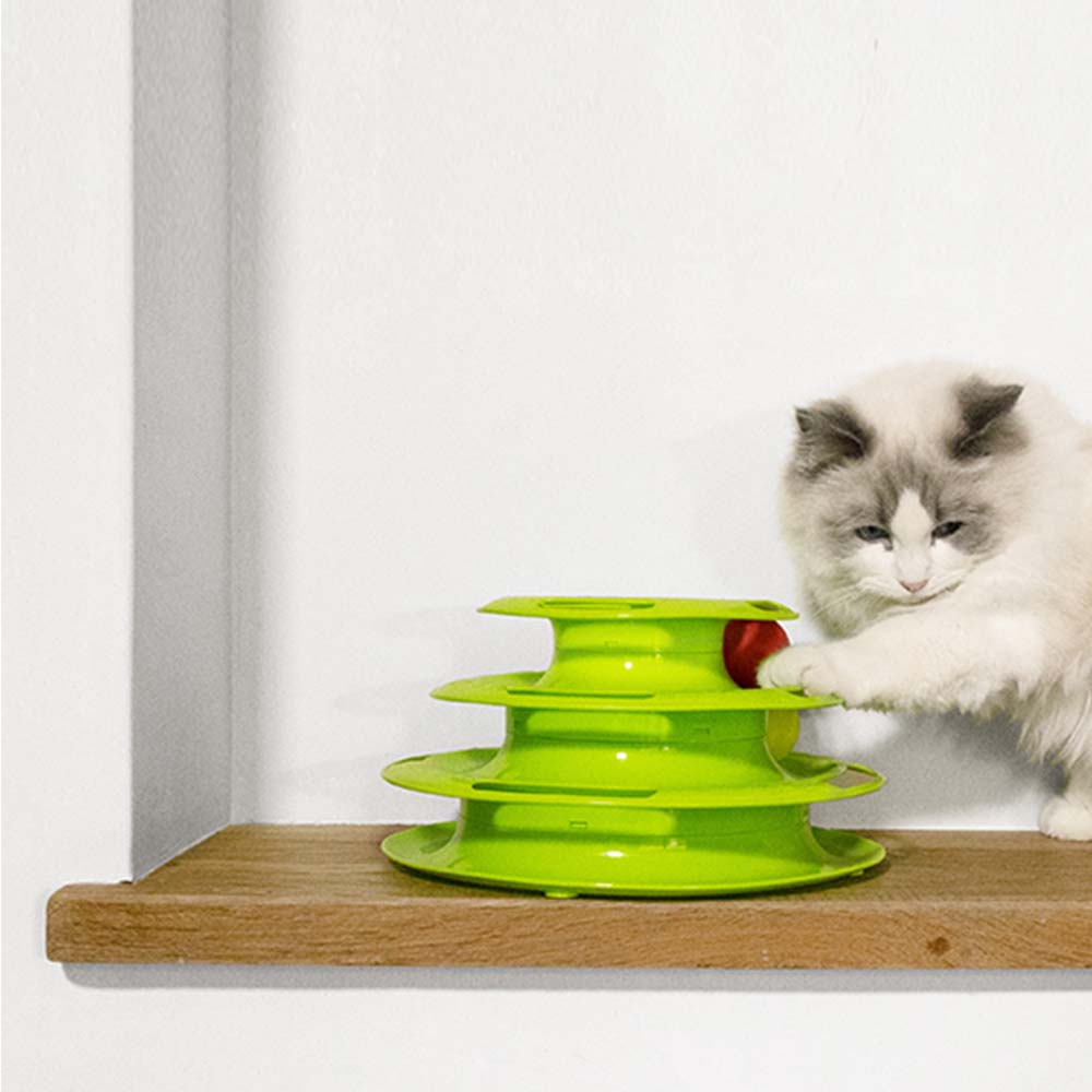 Tower toy with balls that will excite your cat. The toy will keep your little friend busy as she tries to catch the balls rolling in the tower. It is a game that stimulates exercise and significantly reduces anxiety.
