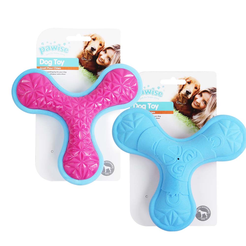 Dog toy made from TPR (Thermo Plastic Rubber) material, durable and flexible to meet the dental needs and oral hygiene of pets. The Tri-Flyer dog toy helps strengthen the bond with your pet as it is a safe toy for your dog to play and chew without any risk of injury.