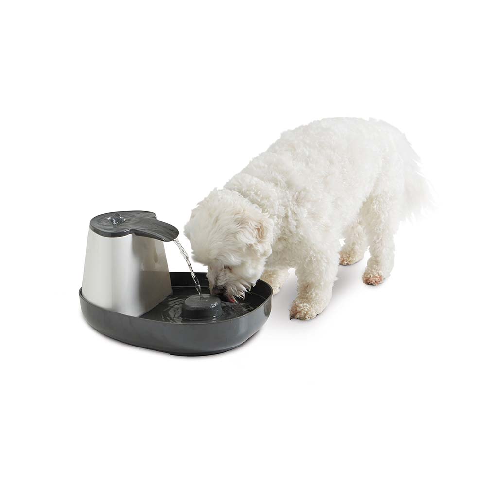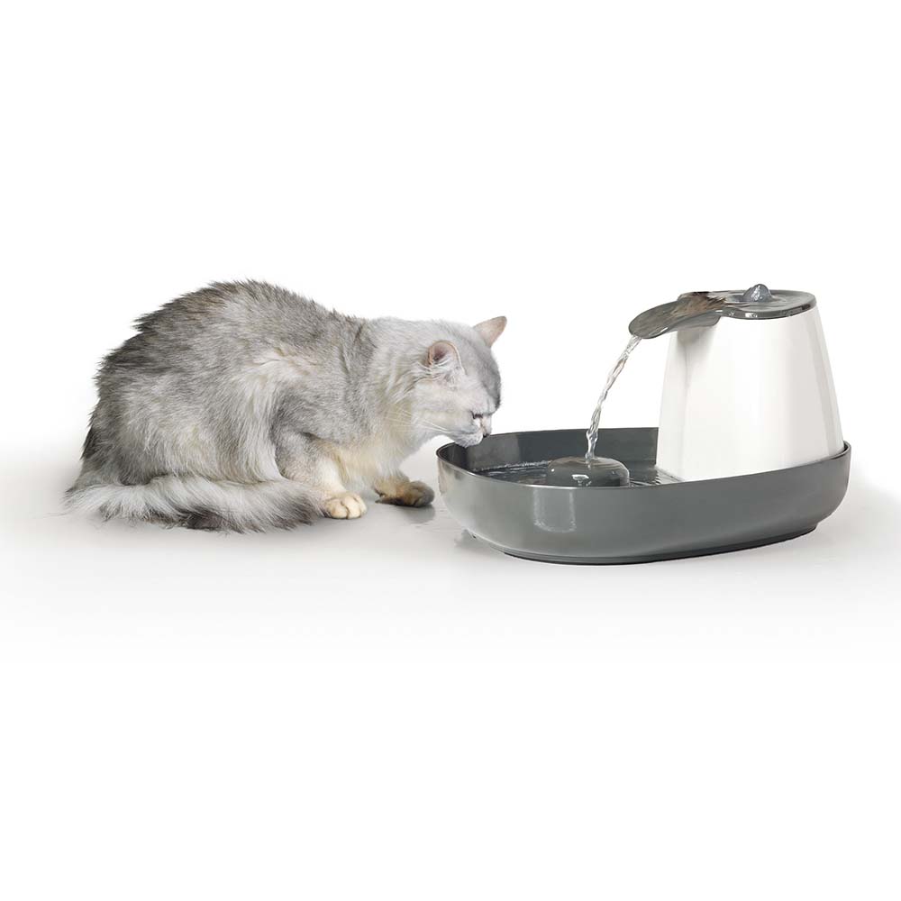 The Cascade is a fountain for cats and small dogs with a modern look that fits perfectly in any interior space. The fountain provides fresh and oxygenated water thanks to its filter, has a capacity of 1.5 liters, and offers three different water supply options (bubbling, flowing, and still). The fountain encourages cats or dogs to drink water and reduces the risk of bladder problems. It is made from high-quality materials, with a non-slip base for extra stability. The fountain is safe to use, operates at a low voltage of 12V, and is quiet. Recommended by veterinarians.