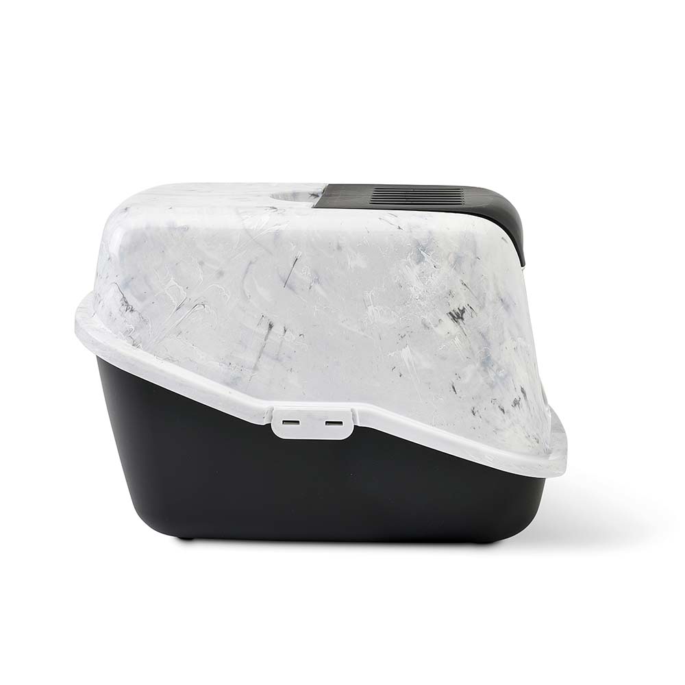 Marble is a timeless choice for any space. It easily combines with other materials and is commonly found in every interior space. The Nestor Marble collection brings the tranquility and simplicity of marble into your home in a unique way. Match your favorite friend's Nestor Marble toilet perfectly in any space of your house. It is easy and quick to clean thanks to its foldable front which opens wide, allowing waste to be removed carefully and swiftly. The toilet features a raised back to prevent leaks, an integrated handle for easy transport, a carbon filter, and a plastic swinging door.