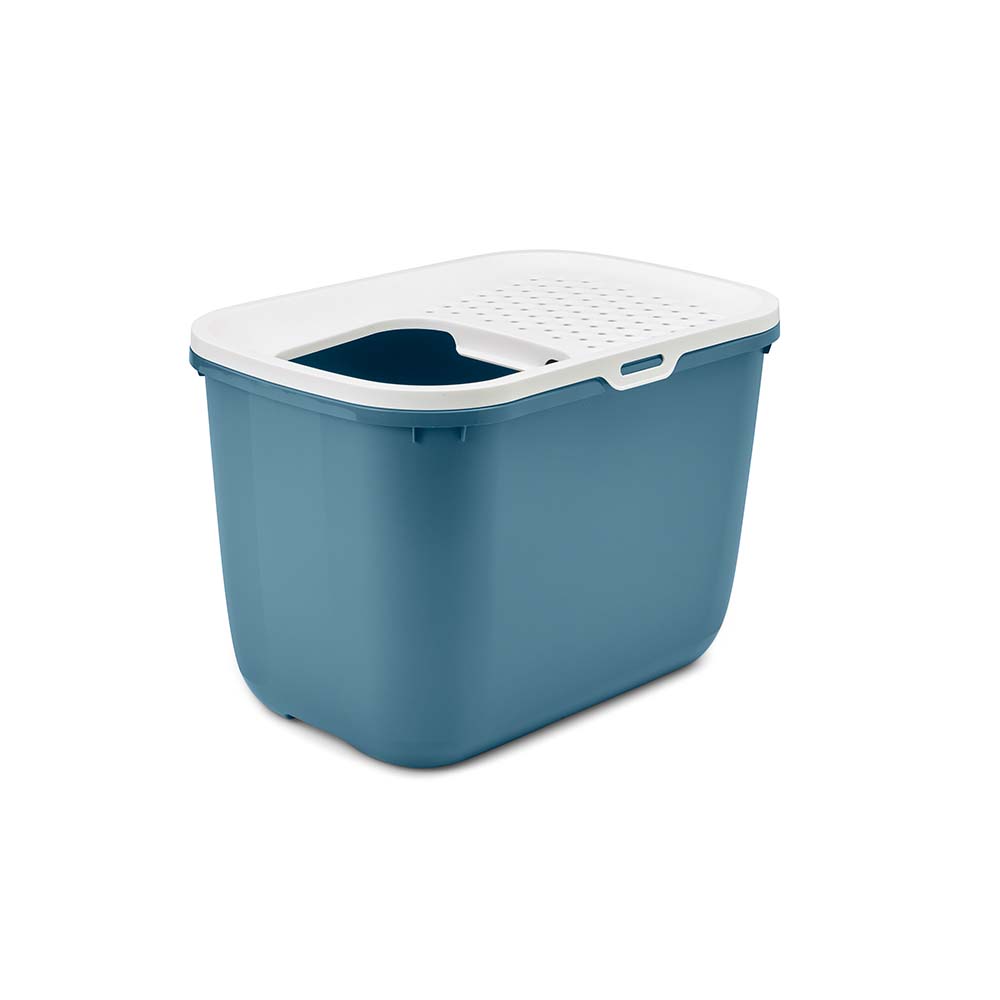The HOP-IN is a closed litter box with a top entry opening. It is ideal for pet owners with both a dog and a cat as it keeps the cat's litter away from the dog. The most important feature of the HOP-IN is the slightly sloped perforated lid. As the cat walks along the lid, any litter is removed from the cat and falls back into the box through the small holes in the lid. This ensures the area remains clean and tidy. The large opening allows easy access for all types of cats. Cleaning is a simple process thanks to the handles which make it easy to move.