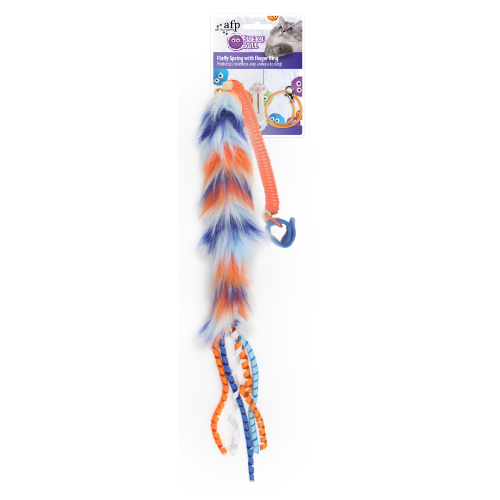 AFP Παιχνίδι Γάτας Furry Ball Fluffy Spring with Finger Ring Πορτοκαλί