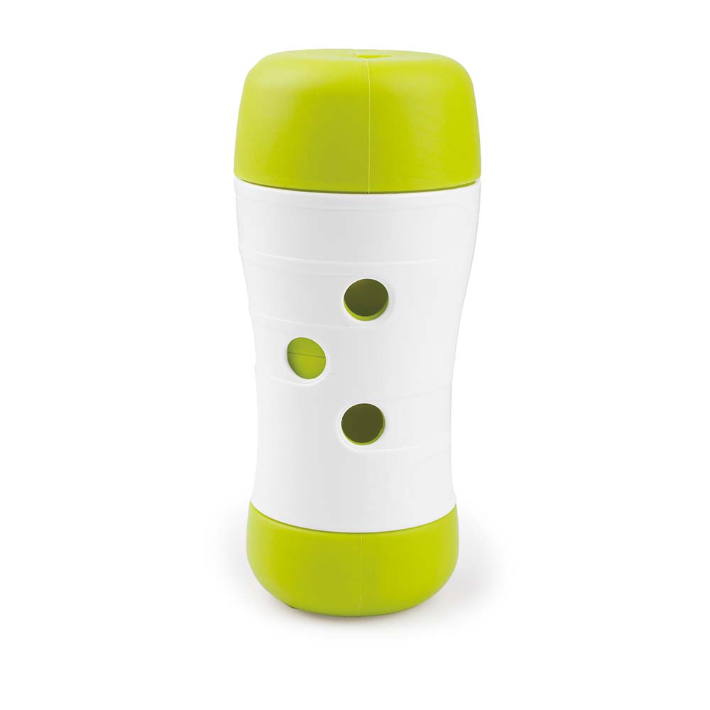 Βάλτε ξηρά τροφή ή λιχουδιές μέσα στο παιχνίδι. Μπορείτε να ρυθμίσετε τον αριθμό των ανοιχτών οπών έτσι ώστε οι λιχουδιές να βγαίνουν γρήγορα ή αργά. Ο σκύλος σας θα έχει ώρες διασκέδασης παίζοντας με αυτό το παιχνίδι.