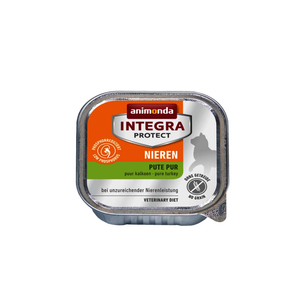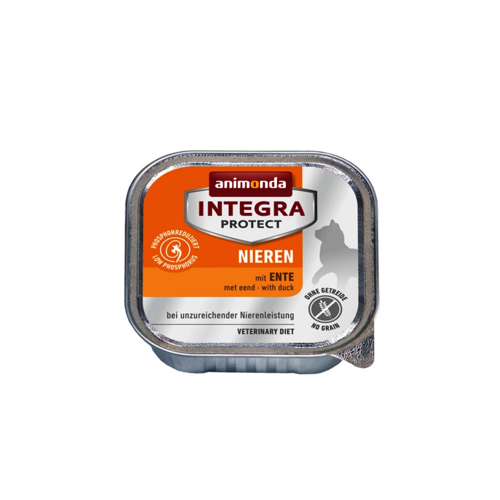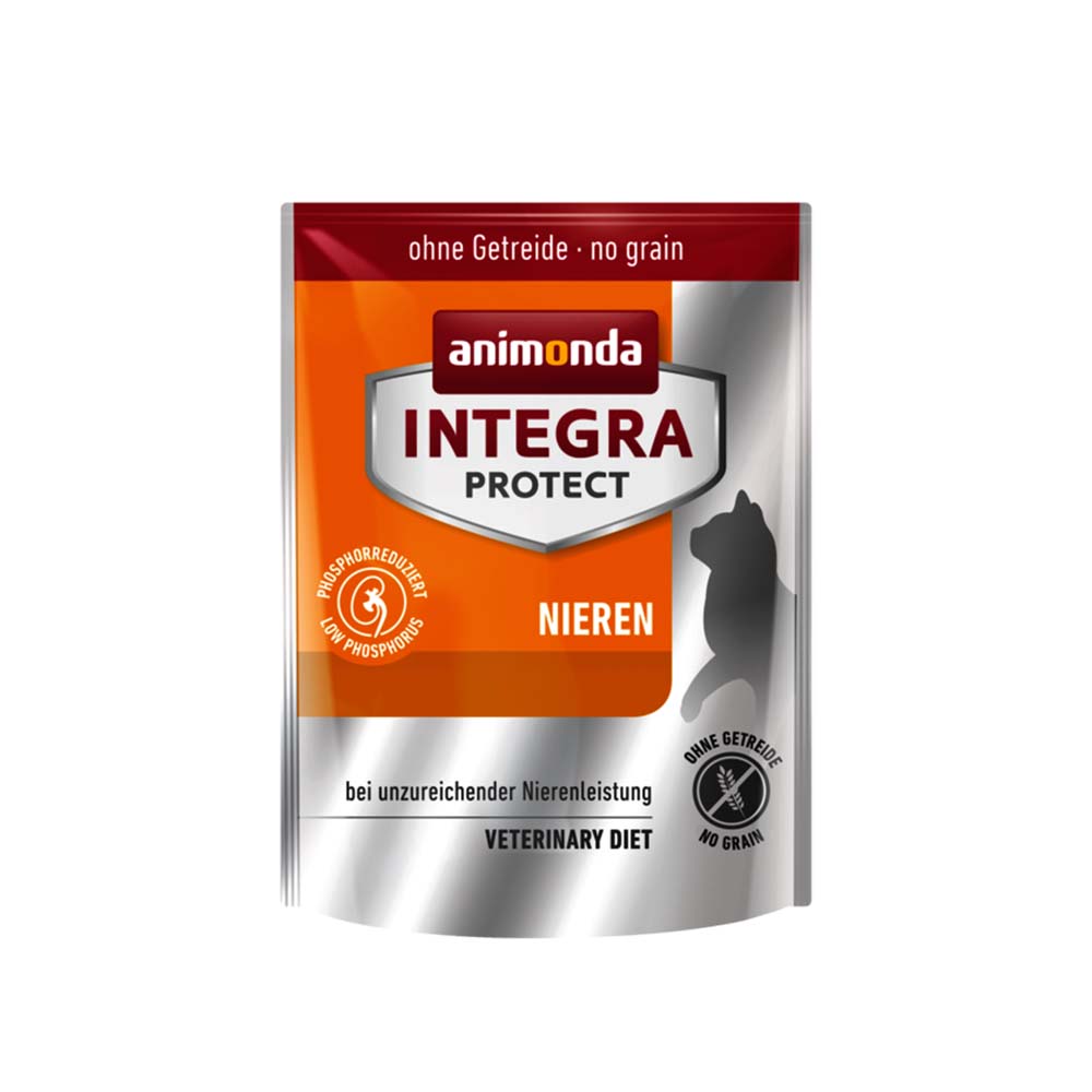 Γάτες με περιορισμένη λειτουργία των νεφρών (νεφρική ανεπάρκεια) απαιτούν ειδική τροφή με μειωμένη περιεκτικότητα σε φώσφορο και πρωτεΐνες. Ένα τυπικό σύμπτωμα των προβλημάτων στα νεφρά είναι η μειωμένη ικανότητα να διηθεί το φώσφορο για παράδειγμα. Επιπροσθέτως, η ικανότητα του νεφρού να διηθεί συγκεκριμένα τελικά προϊόντα του μεταβολισμού των πρωτεϊνών είναι επίσης μειωμένη. Πολύ μεγάλες περιεκτικότητες σε πρωτεΐνες μπορούν ως εκ τούτου να περιορίσουν την νεφρική λειτουργία. Οι πρωτεΐνες που παρέχονται στο INTEGRA® PROTECT είναι ως εκ τούτου ιδιαίτερα υψηλής ποιότητας έτσι ώστε οι πρωτεϊνικές απαιτήσεις των γατών να καλύπτονται πλήρως παρά την μειωμένη περιεκτικότητα. Επιπλέον η περιορισμένη νεφρική δραστηριότητα σημαίνει ότι απαιτείται μια ελαφρά αύξηση στην περιεκτικότητα της βιταμίνης D3 στο INTEGRA® PROTECT Renal. Μία ιδιαίτερα υψηλή αποδοχή και εύκολη πεπτικότητα αποτελούν χαρακτηριστικά διάκρισης αυτού του προϊόντος. Προκειμένου να διασφαλισθεί ο βέλτιστος εφοδιασμός με τροφή, θα πρέπει να προσφέρετε, αν είναι δυνατόν, στη γάτα σας το ημερήσιο σιτηρέσιο τροφής μοιρασμένο σε 3 διαφορετικά γεύματα. Ειδικότερα στην περίπτωση της χρόνιας νεφρικής ανεπάρκειας, είναι σημαντικό να δίνεται αυτή η δίαιτα αποκλειστικά και καθ‘όλη τη διάρκεια της ζωής της γάτας. Η προσθήκη «κανονικών» προϊόντων διατροφής, υπολείμματα των γευμάτων και άλλες συμπληρωματικές τροφές θα πρέπει να αποφεύγονται προκειμένου να μην τεθεί σε κίνδυνο η επιτυχία της θεραπείας.