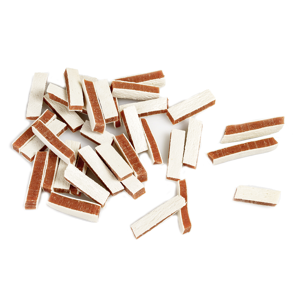Συστατικά: Στήθος κοτόπουλου: 40%, ψάρι: 40%, καλαμποκάλευρο: 16,5% (Σορβιτόλη, γλυκερόλη, σορβικό κάλιο, ζάχαρη, αλάτι) 3,5%.