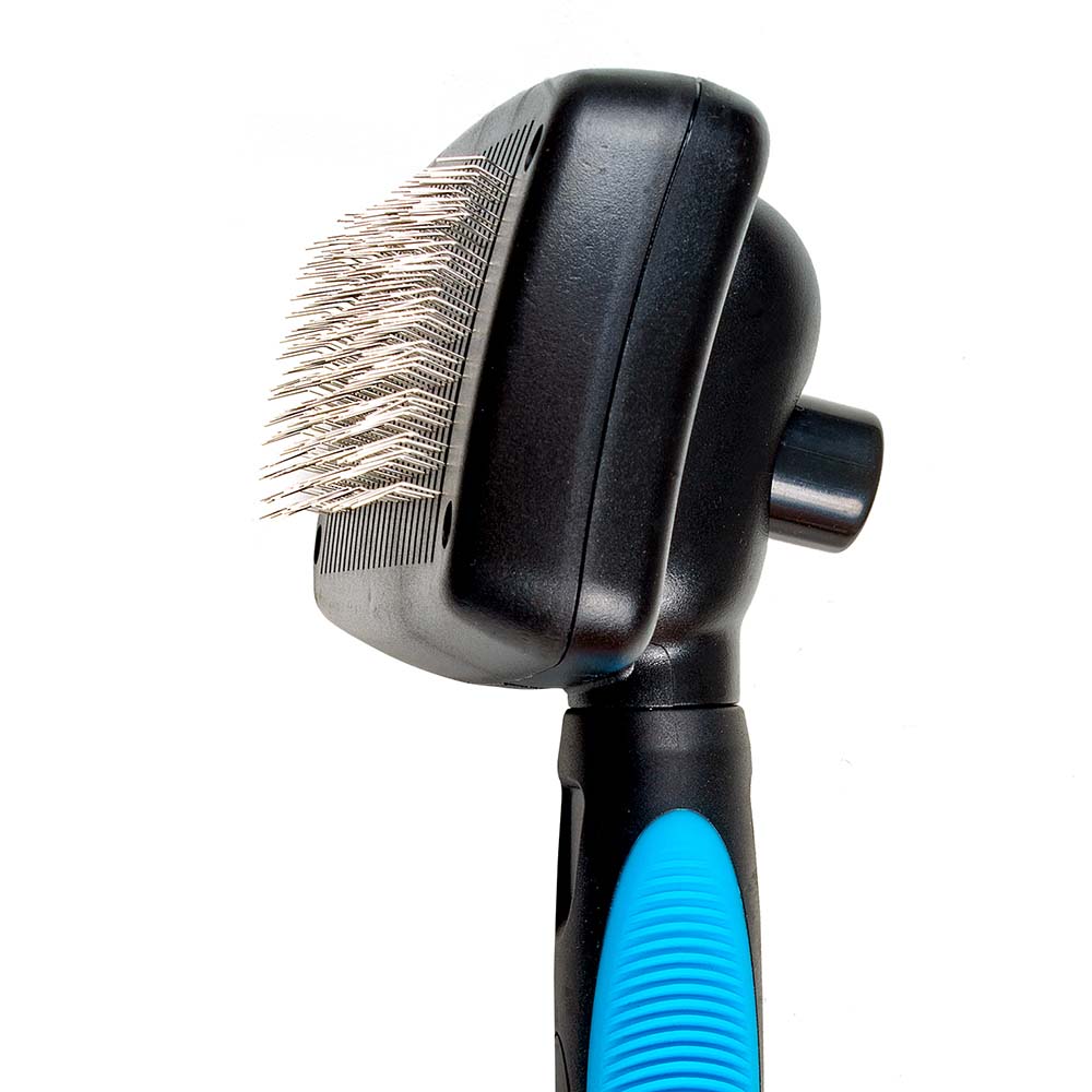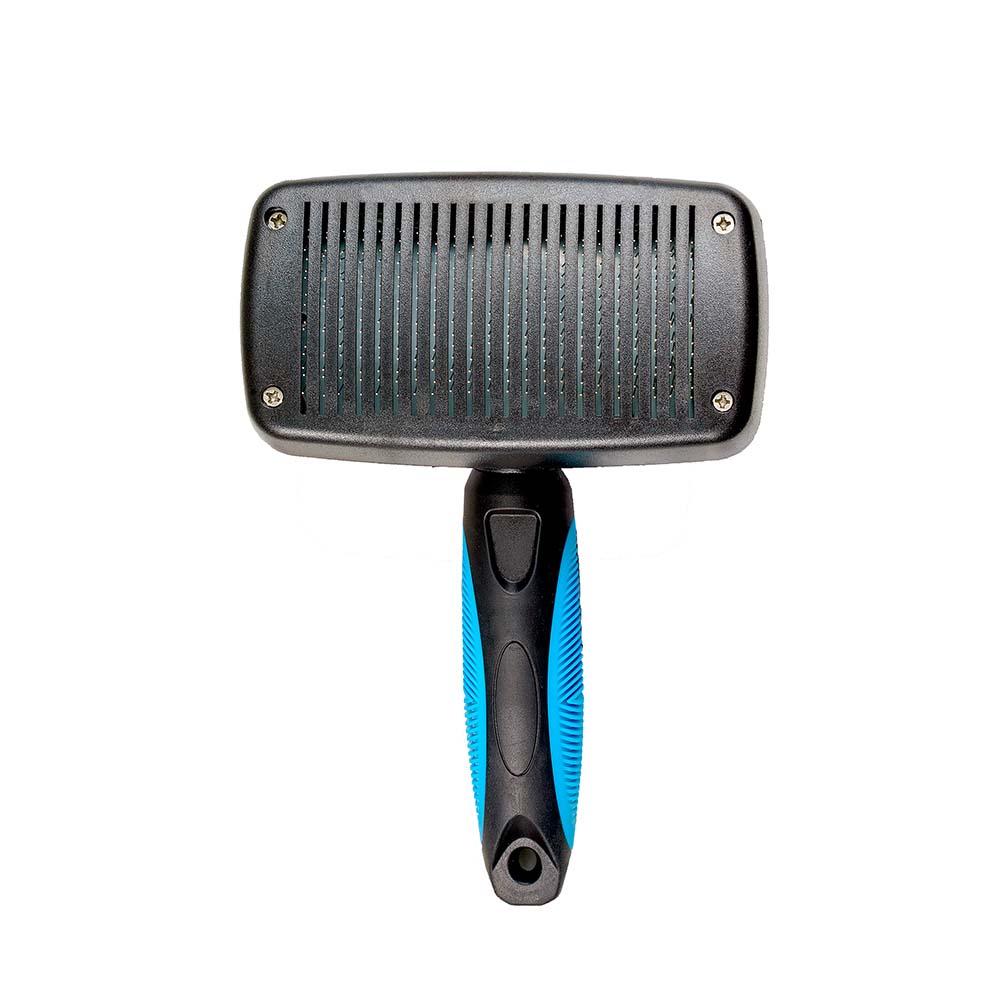 Βούρτσα Slicker αυτοκαθαριζόμενη με μεταλλικές ακίδες που βοηθούν στην αφαίρεση τριχών, βρωμιάς & κόμπων. Διαθέτει εργονομική, αντιολισθητική λαβή για ασφαλή και άνετη χρήση. Κατάλληλη για καθημερινή χρήση σε σκύλους & γάτες με κοντό, μεσαίο & μακρύ τρίχωμα.