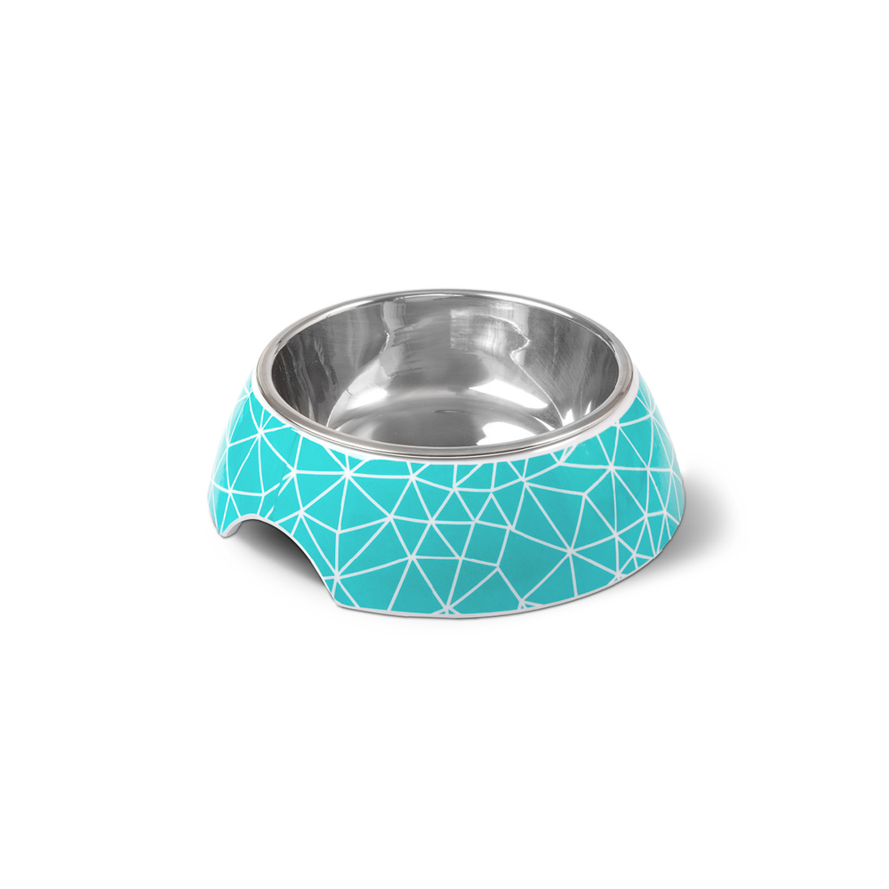 GLEE Μπολ φαγητού και νερού μελαμίνης με ανοξείδωτο κάδο Rhombus Τυρκουάζ