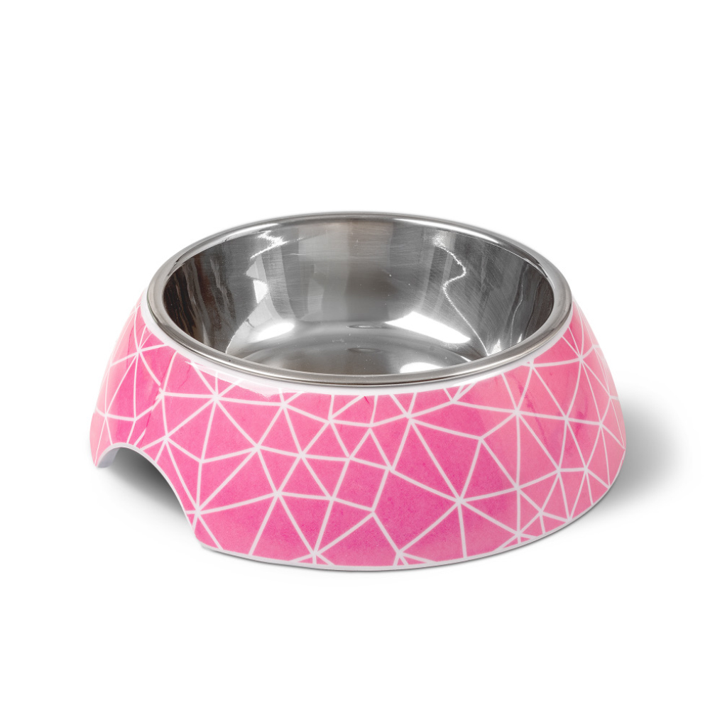 GLEE Μπολ φαγητού και νερού μελαμίνης με ανοξείδωτο κάδο Rhombus Ροζ L 700ml