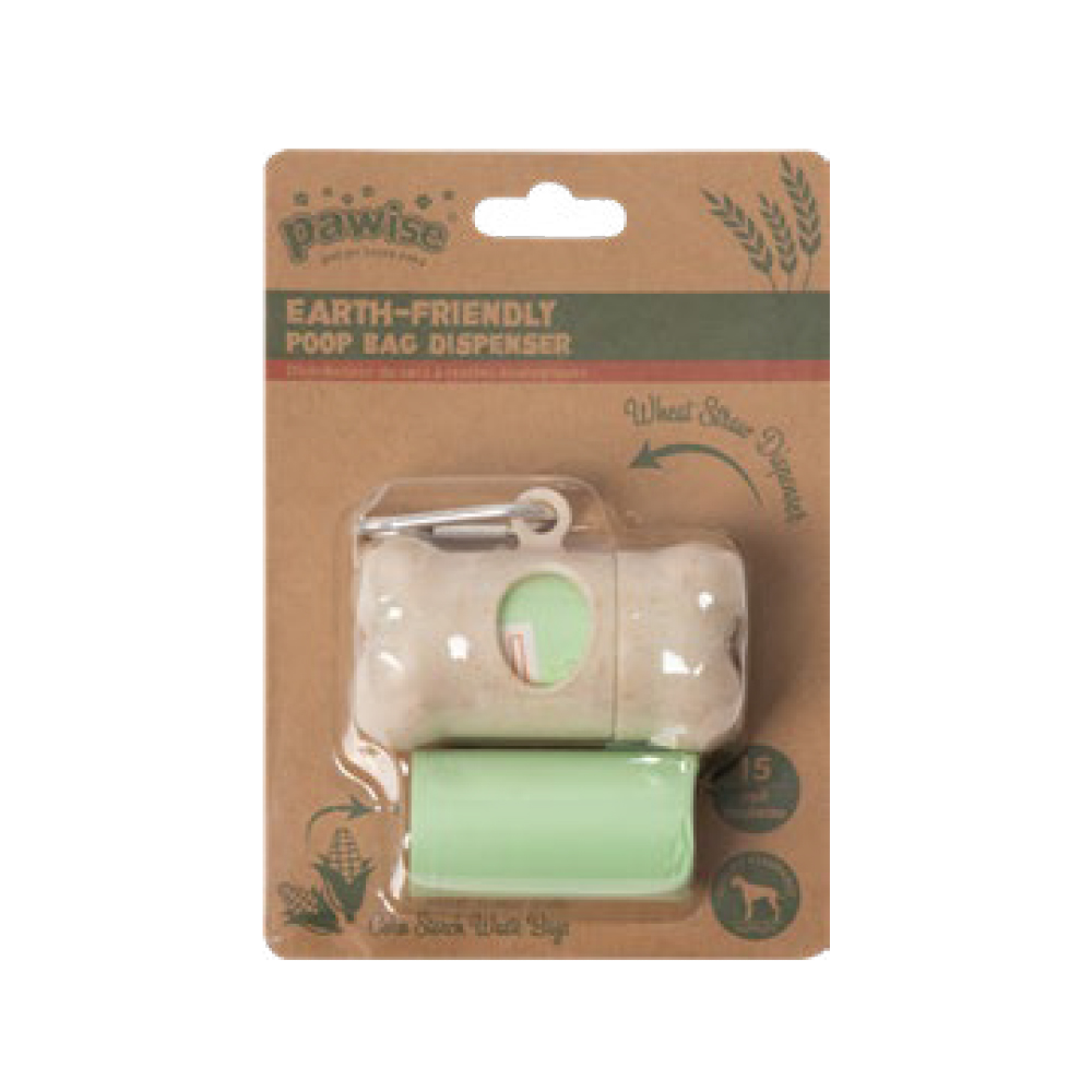 Οικολογική θήκη ρολού σακούλας συλλογής περιττωμάτων με κλιπ για εύκολη εγκατάσταση στη ζώνη ή στον οδηγό του κατοικίδιου σας. Το dispenser έχει κατασκευαστεί από υλικό που βασίζεται στο στάχυ ενώ οι συμπεριλαμβάνουσες σακούλες από καλαμπόκι.