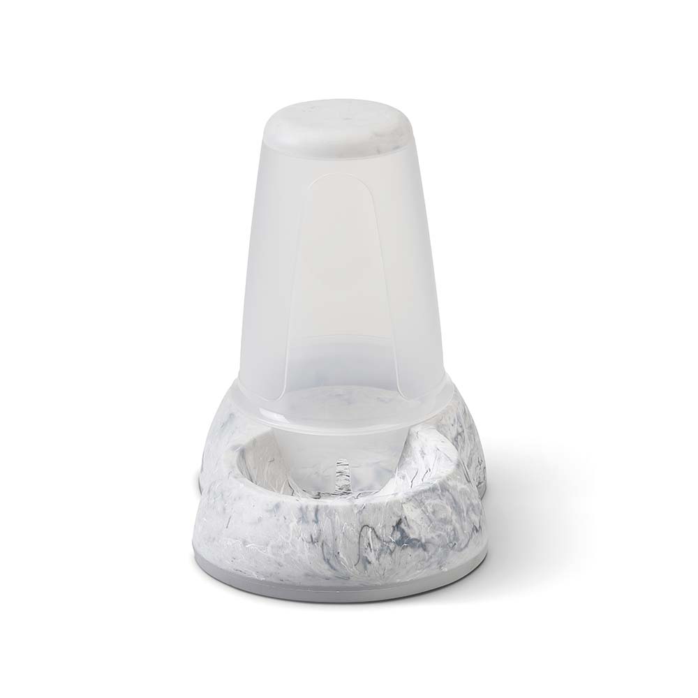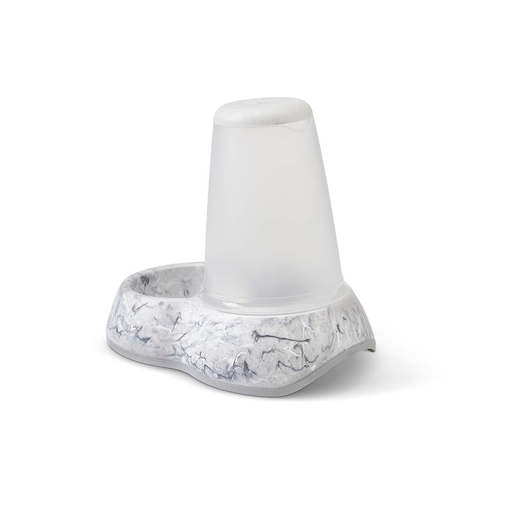 Το μάρμαρο αποτελεί μια διαχρονική επιλογή για κάθε χώρο. Συνδυάζεται εύκολα με άλλα υλικά και συναντάται συχνά σε κάθε εσωτερικό χώρο. Η συλλογή Marble φέρνει την ηρεμία και την απλότητα του μαρμάρου στο σπίτι σας με μοναδικό τρόπο. Η Premium ποτίστρα Marble Loop προσδίδει μια πολυτελή πινελιά στον χώρο σας και παρέχει στο αγαπημένο σας κατοικίδιο φρέσκο νερό. Το μπολ μπορεί εύκολα να ανασηκωθεί για αναπλήρωση ή καθαρισμό χάρη στην ενσωματωμένη λαβή που διαθέτει. Το διαφανές δοχείο επιτρέπει τον εύκολο έλεγχο της στάθμης του νερού. Η ενσωματωμένη λαστιχένια βάση προσφέρει στο μπολ επιπλέον σταθερότητα και διασφαλίζει ότι θα παραμείνει στην θέση του. Είναι εύκολη στον καθαρισμό χάρη στο ανθεκτικό πλαστικό κατασκευής.