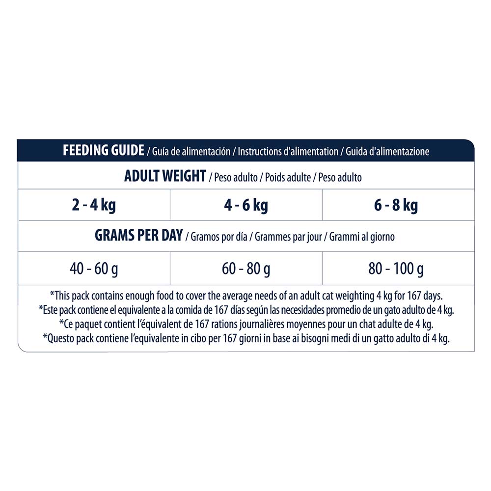 Ingredients: Salmon 18%, corn proteins, rice 15%, dehydrated salmon proteins, wheat, animal fat, wheat, corn, hydrolyzed proteins, beet pulp, potassium chloride, plasma proteins (natural source of immunoglobulins) 0.4%, inulin 0.4%, natural polyphenols (0.01%).