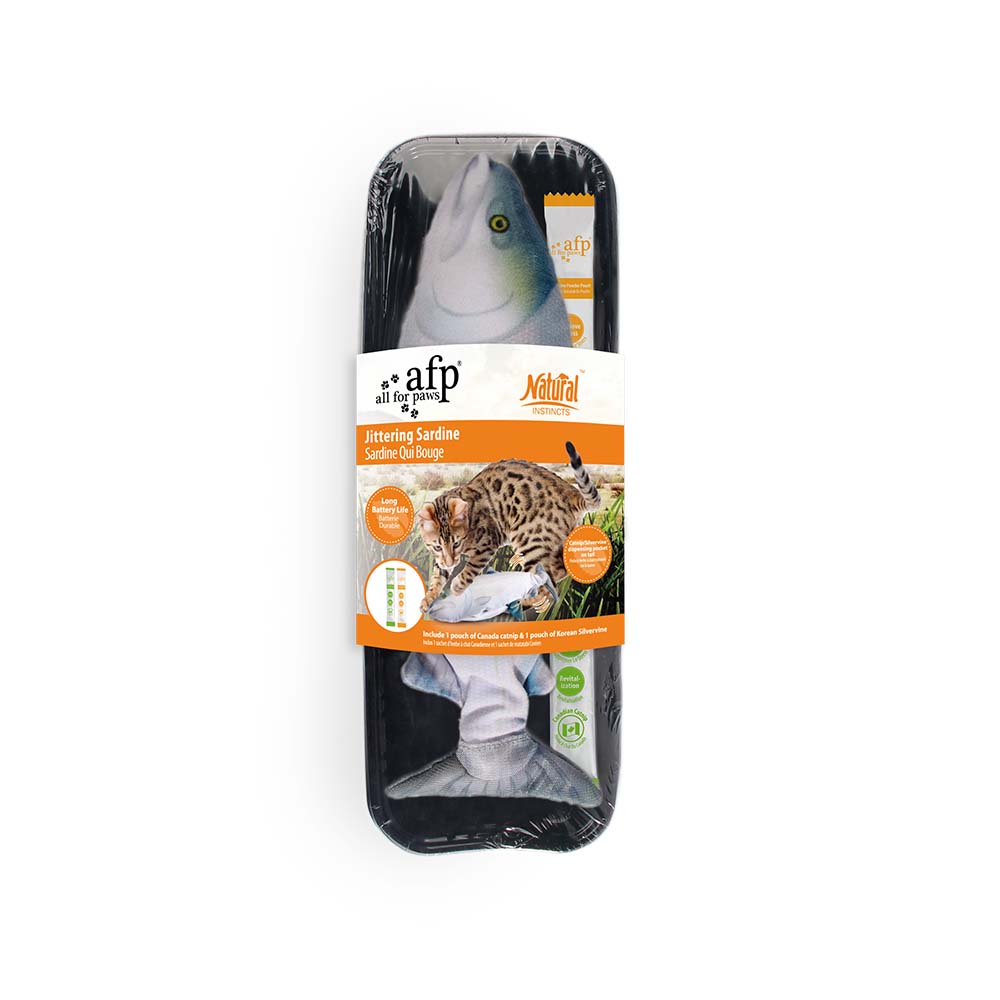 Daily exercise and activity are essential for your cat's physical and mental health. Natural Instinct toys are designed according to their instincts and playful behavior, inspired by nature to offer endless hours of play. The Fish Sardine moves like a real fish and is rechargeable via USB.