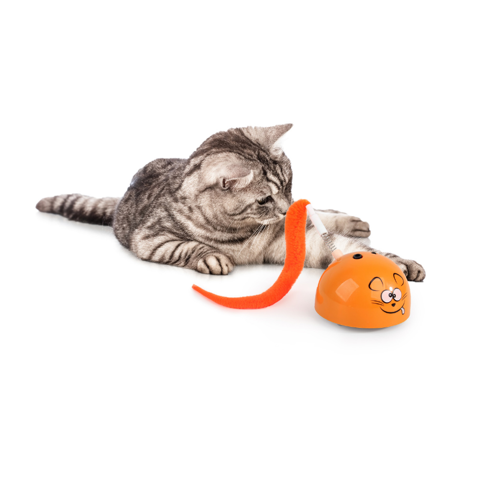 The random movement of the Mad Mouse will awaken the natural instincts of your beloved friend. Its velvet tail promises to capture your cat's attention and maintain interest in play and entertainment. It features a standby mode for battery saving and a motion detector.