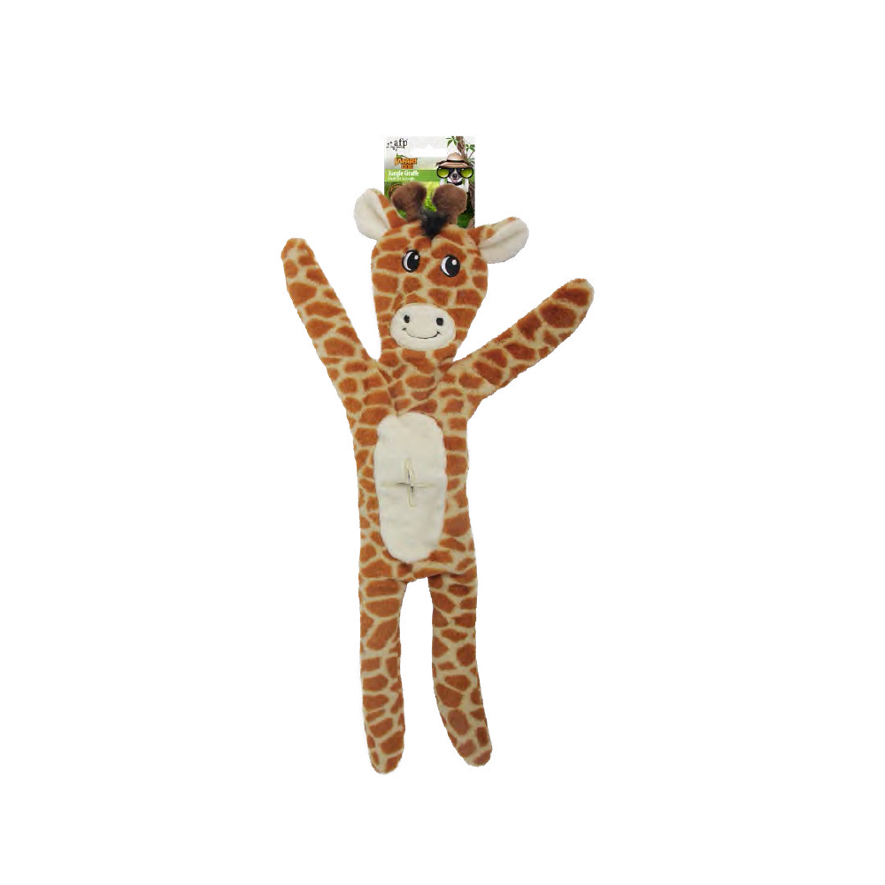Giraffe toy with a cute design for entertainment. It contains no stuffing, featuring an internal rope with knots and a hole for dogs to chew and satisfy their natural instincts.