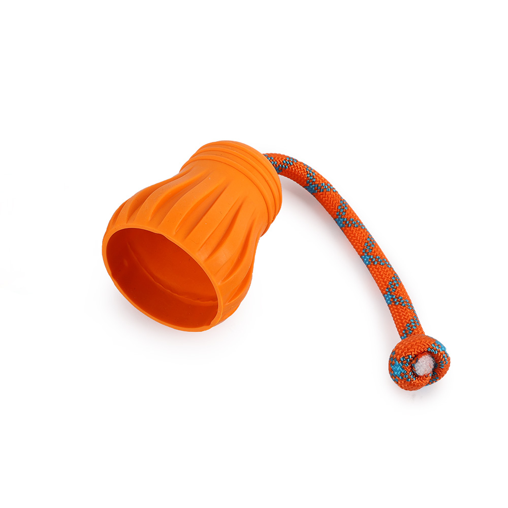 Interactive dog toy with ball and rope that encourages play and provides mental and physical well-being.