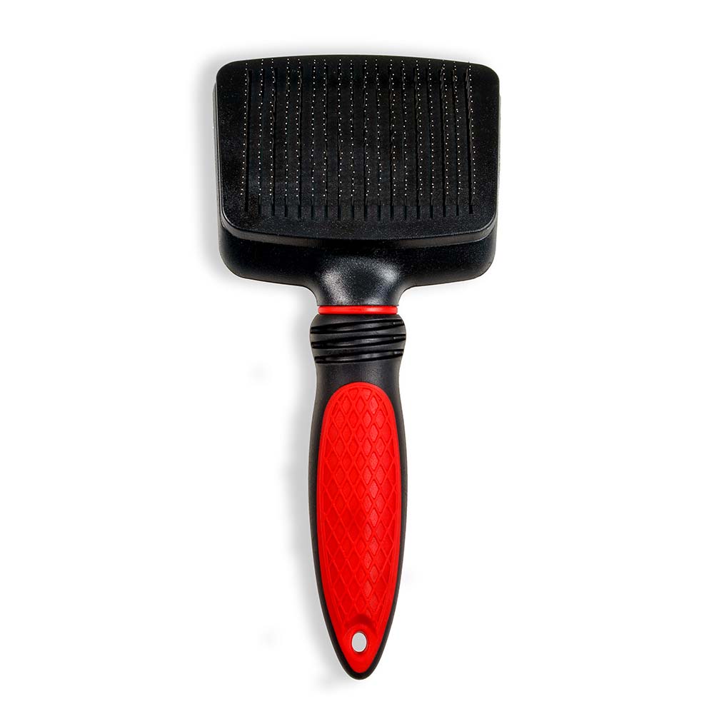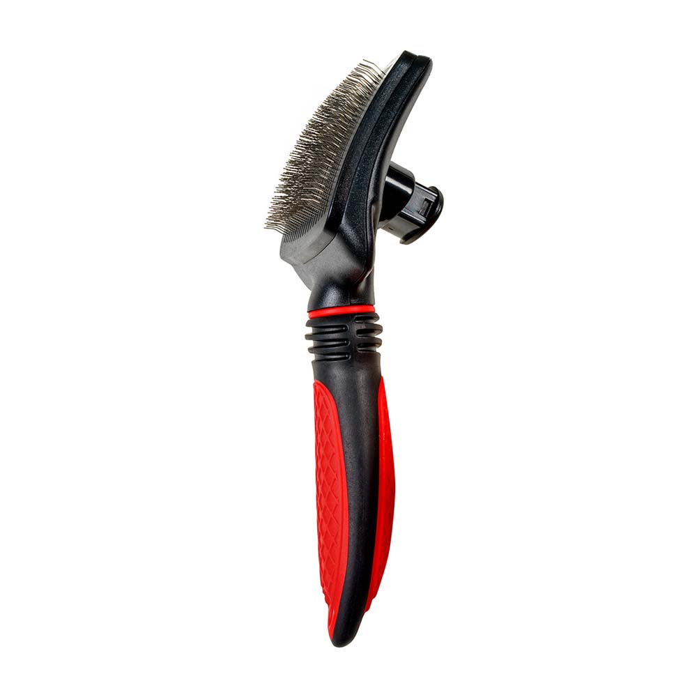 Self-cleaning brush suitable for daily use on dogs & cats with short, medium, & long fur. Features metal pins that help remove hair, dirt, & tangles. With an ergonomic handle for safe & comfortable use.