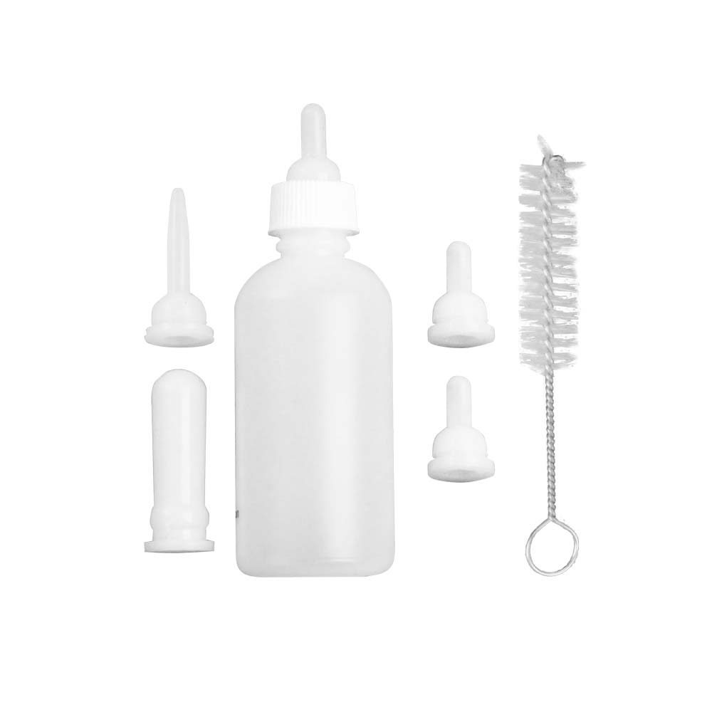 Bottle for puppies and kittens. Features a clear measuring scale to control the amount, different types of nipples, and a cleaning brush. All accessories can be sterilized in boiled water.