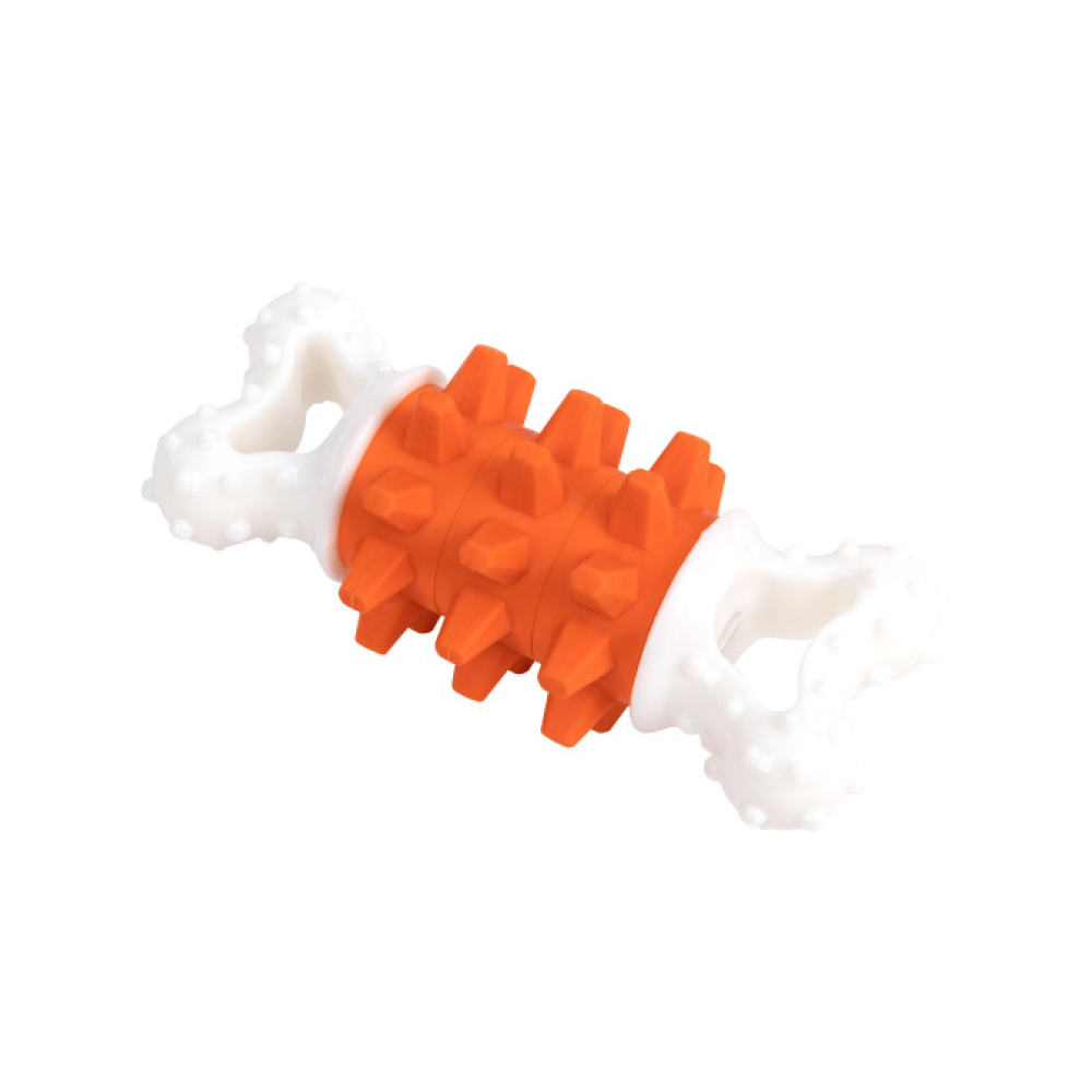 Oral care and entertainment in one toy. The Giggle Bone is a versatile and durable chew toy made from elastic material. It aids in dental cleaning and maintaining gum health.
