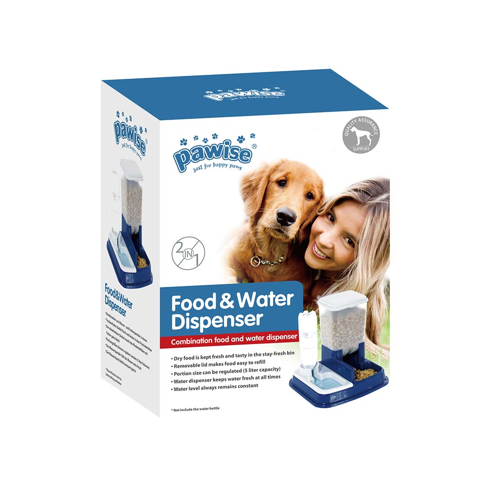 Multifunctional pet feeder and water dispenser. Ensures continuous supply of food and water for your cat or dog. The kibble container has a capacity of up to 5 liters. Easy to clean and the removable lid facilitates food replenishment.