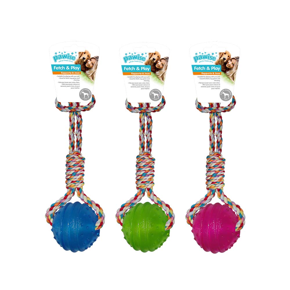 The TPR Ball / Rope Handle toy is ideal for play and simultaneously cleaning your pet's teeth. The knots help your dog enjoy its time while chewing, cleaning its teeth, and keeping its gums healthy. Perfect for teething puppies and those who find chewing entertaining.