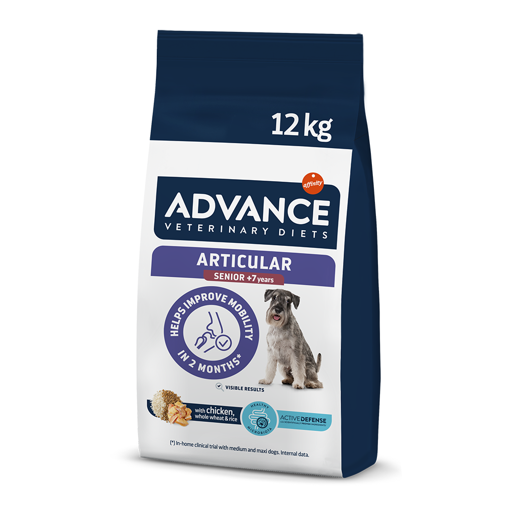 Η Advance Veterinary Diet Articular Senior είναι μια πλήρης και ισορροπημένη διατροφή για την αποκατάσταση και τη διατροφική υποστήριξη της φροντίδας των αρθρώσεων σε ηλικιωμένους σκύλους ηλικίας από 6 ετών ανάλογα με το μέγεθος (μεγάλο +6 ετών, μεσαίο +7 ετών, πολύ μικρό +8 ετών).