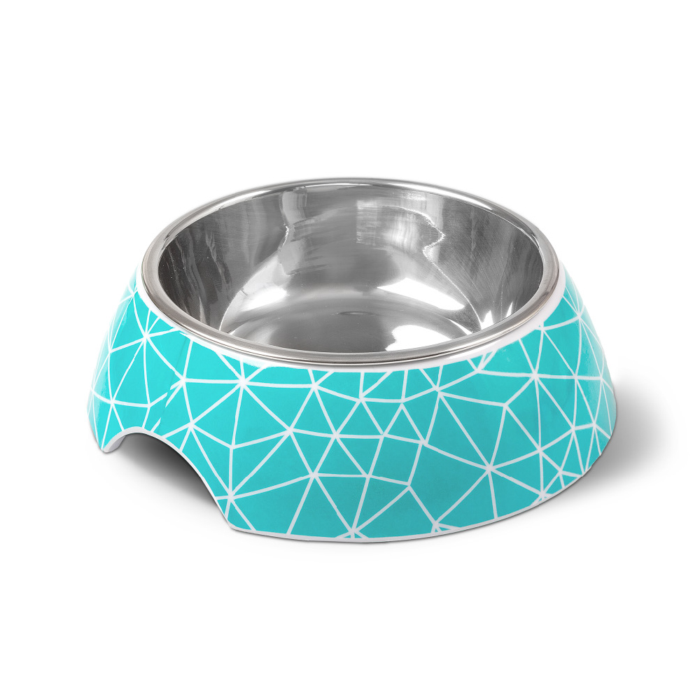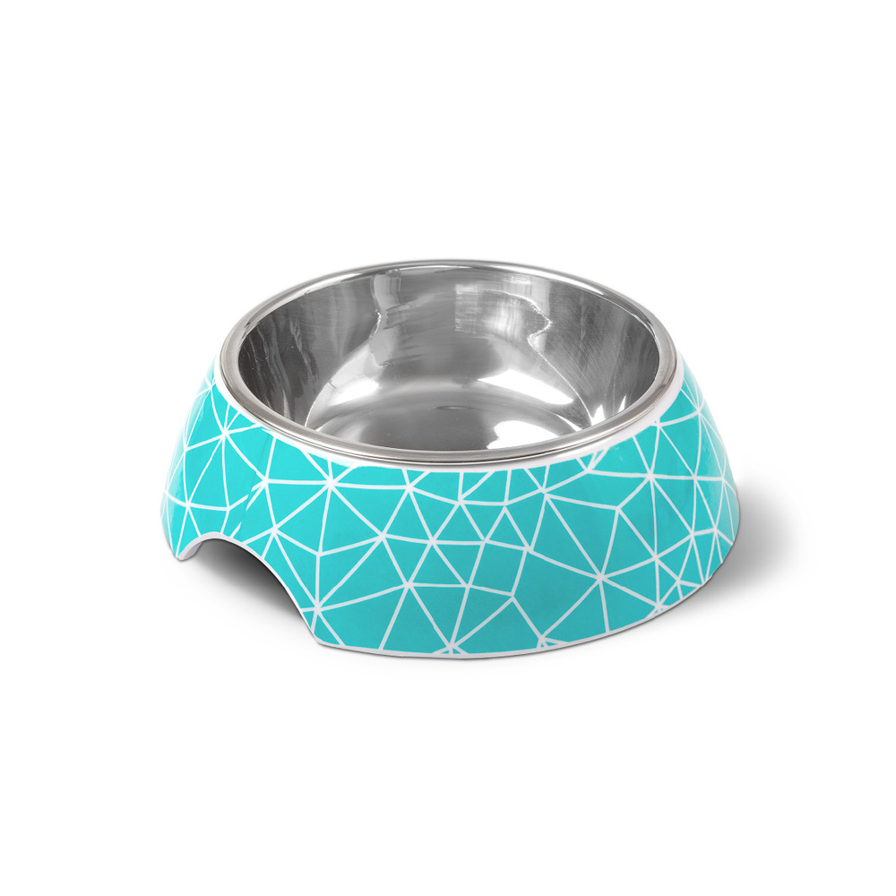 GLEE Μπολ φαγητού και νερού μελαμίνης με ανοξείδωτο κάδο Rhombus Τυρκουάζ