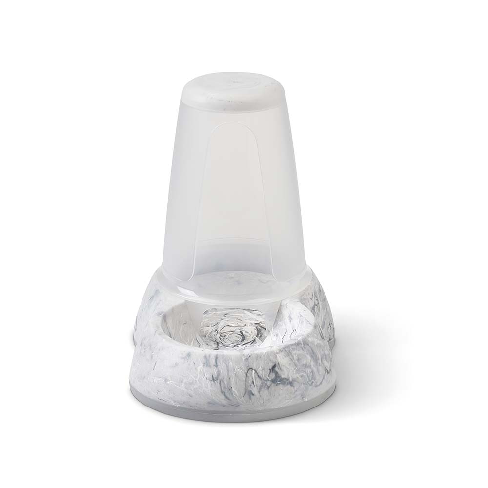Το μάρμαρο αποτελεί μια διαχρονική επιλογή για κάθε χώρο. Συνδυάζεται εύκολα με άλλα υλικά και συναντάται συχνά σε κάθε εσωτερικό χώρο. Η συλλογή Marble φέρνει την ηρεμία και την απλότητα του μαρμάρου στο σπίτι σας με μοναδικό τρόπο. Η Premium ταΐστρα Marble Loop προσδίδει μια πολυτελή πινελιά στον χώρο σας και παρέχει στο αγαπημένο σας κατοικίδιο φρέσκο φαγητό. Το μπολ μπορεί εύκολα να ανασηκωθεί για αναπλήρωση ή καθαρισμό χάρη στην ενσωματωμένη λαβή που διαθέτει. Το διαφανές δοχείο επιτρέπει τον εύκολο έλεγχο του επιπέδου του φαγητού. Η ενσωματωμένη λαστιχένια βάση προσφέρει στο μπολ επιπλέον σταθερότητα και διασφαλίζει ότι θα παραμείνει στην θέση του. Είναι εύκολη στον καθαρισμό χάρη στο ανθεκτικό πλαστικό κατασκευής.