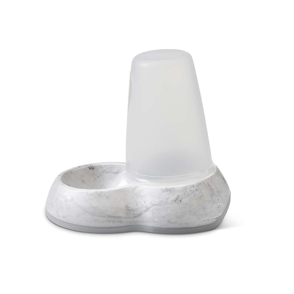 Το μάρμαρο αποτελεί μια διαχρονική επιλογή για κάθε χώρο. Συνδυάζεται εύκολα με άλλα υλικά και συναντάται συχνά σε κάθε εσωτερικό χώρο. Η συλλογή Marble φέρνει την ηρεμία και την απλότητα του μαρμάρου στο σπίτι σας με μοναδικό τρόπο. Η Premium ταΐστρα Marble Loop προσδίδει μια πολυτελή πινελιά στον χώρο σας και παρέχει στο αγαπημένο σας κατοικίδιο φρέσκο φαγητό. Το μπολ μπορεί εύκολα να ανασηκωθεί για αναπλήρωση ή καθαρισμό χάρη στην ενσωματωμένη λαβή που διαθέτει. Το διαφανές δοχείο επιτρέπει τον εύκολο έλεγχο του επιπέδου του φαγητού. Η ενσωματωμένη λαστιχένια βάση προσφέρει στο μπολ επιπλέον σταθερότητα και διασφαλίζει ότι θα παραμείνει στην θέση του. Είναι εύκολη στον καθαρισμό χάρη στο ανθεκτικό πλαστικό κατασκευής.