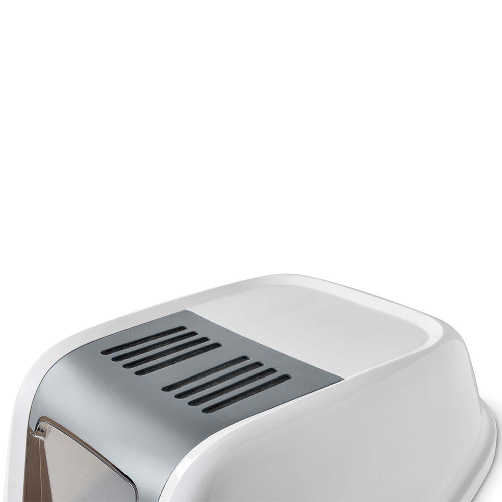 Η Nestor είναι μια μοντέρνα τουαλέτα που καθαρίζεται εύκολα και γρήγορα χάρη στην αναδιπλούμενη πρόσοψη. Το ειδικά διαμορφωμένο μπροστινό μέρος ανοίγει διάπλατα, επιτρέποντας τα απορρίμματα γάτας να αφαιρούνται προσεκτικά και γρήγορα.  Διαθέτει ανυψωμένη πλάτη που αποτρέπει τις διαρροές, έχει ενσωματωμένη λαβή, πλαστική αιωρούμενη πόρτα και φίλτρο άνθρακα. Ιδανική για γάτες μεγαλόσωμων φυλών.