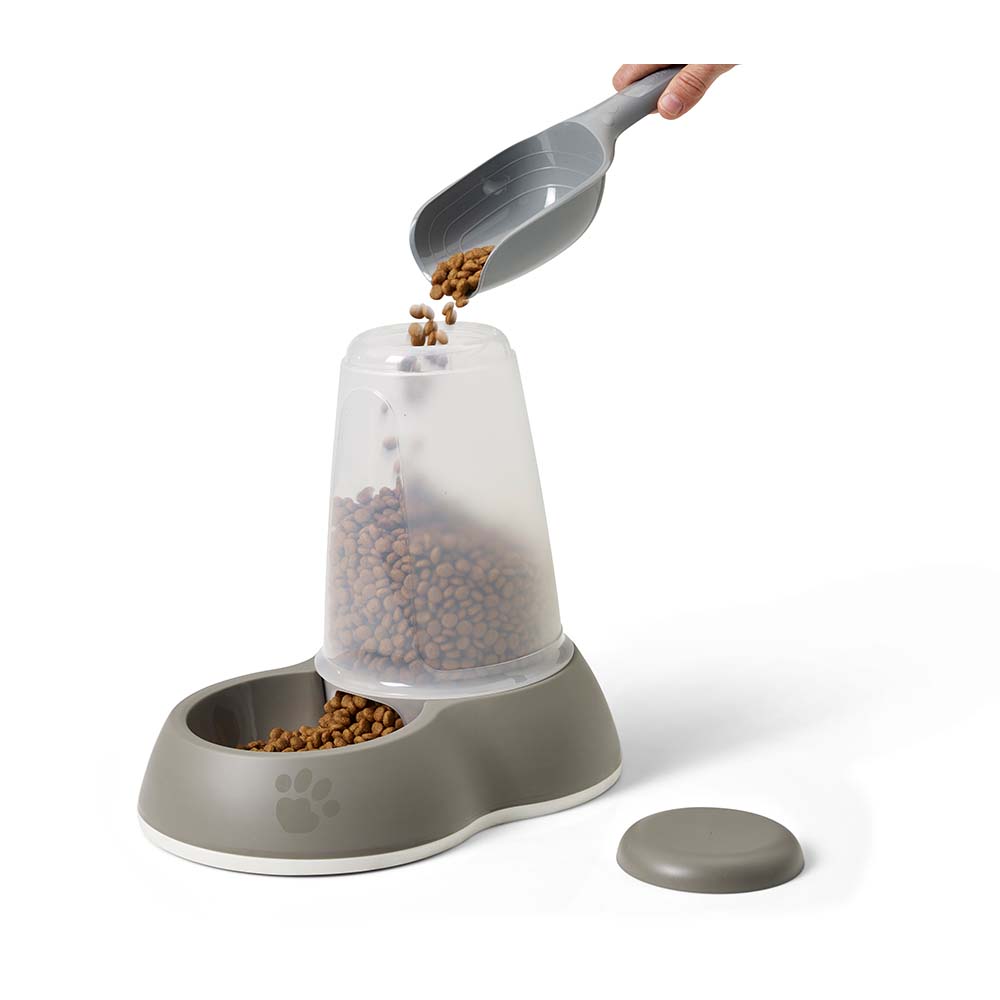 H Loop Food Store, είναι μια σύγχρονη premium ταΐστρα κατασκευασμένη από πλαστικό υψηλής ποιότητας. Παρέχει στη γάτα, το σκύλο ή το μικρό σας κατοικίδιο φρέσκο φαγητό όποτε πεινάει. Το διαφανές δοχείο επιτρέπει τον εύκολο έλεγχο του επιπέδου περιεκτικότητας σε τροφή. Η ενσωματωμένη ελαστική αντιολισθητική βάση, δίνει στο μπολ επιπλέον σταθερότητα και στιβαρότητα και διασφαλίζει ότι θα παραμείνει στη θέση του. Είναι κατασκευασμένη από ανθεκτικό πλαστικό που την καθιστά εύκολη στον καθαρισμό.